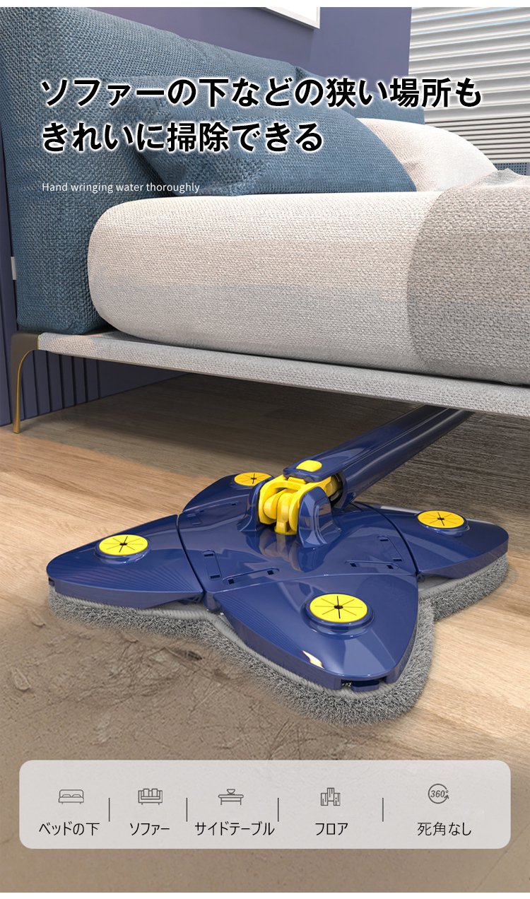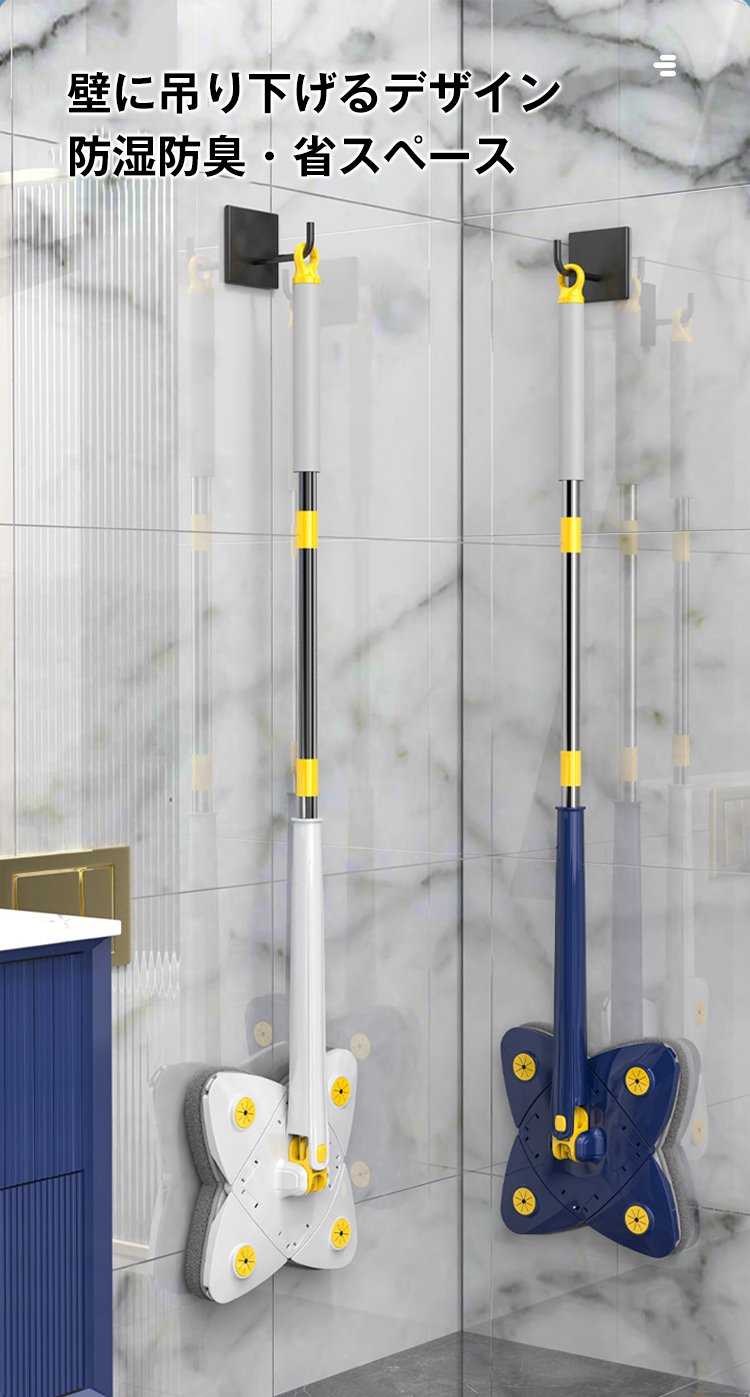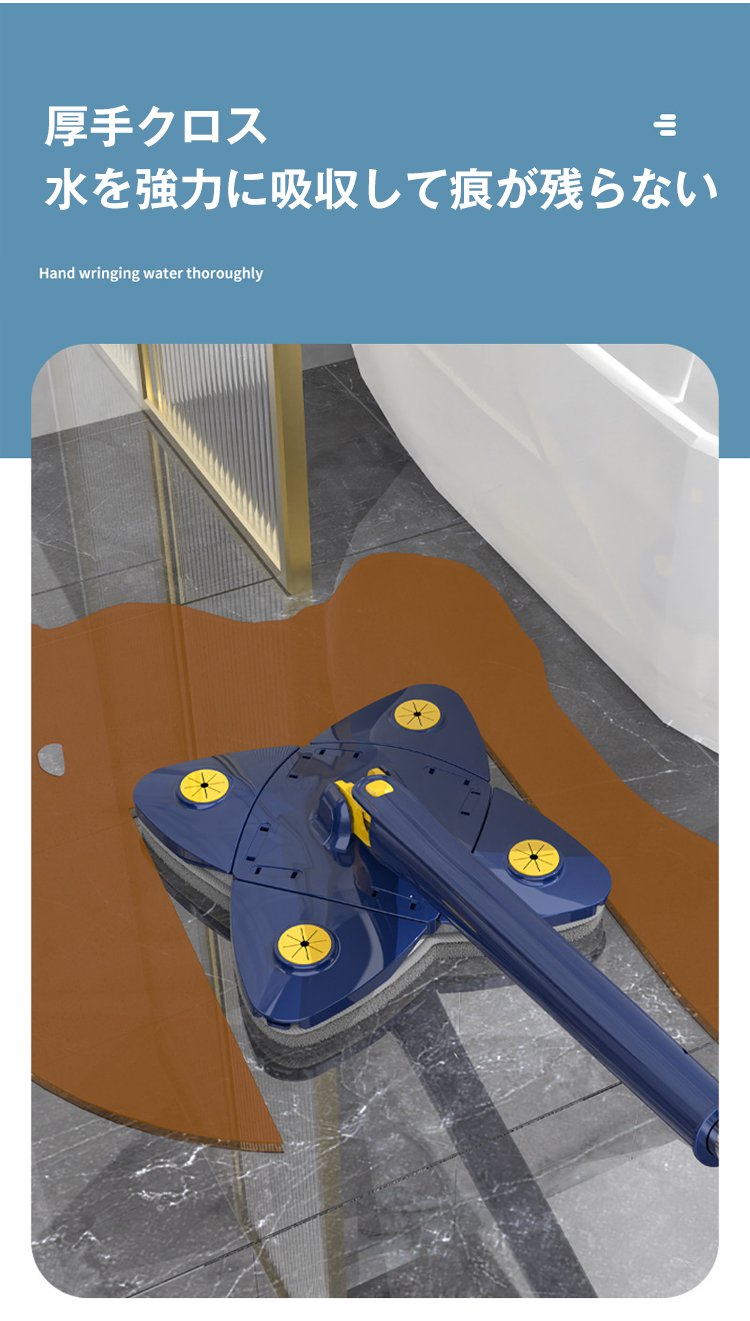 手洗い不要、水絞り機能、乾湿両用、吸水性抜群、毛落ちしにくい、回転可能、長めハンドル